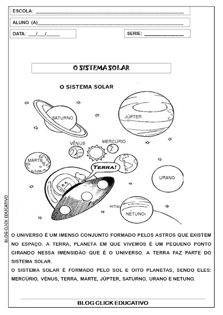 2º ANO: SEQUENCIA DIDÁTICA SOBRE SISTEMA SOLAR PARA IMPRIMIR