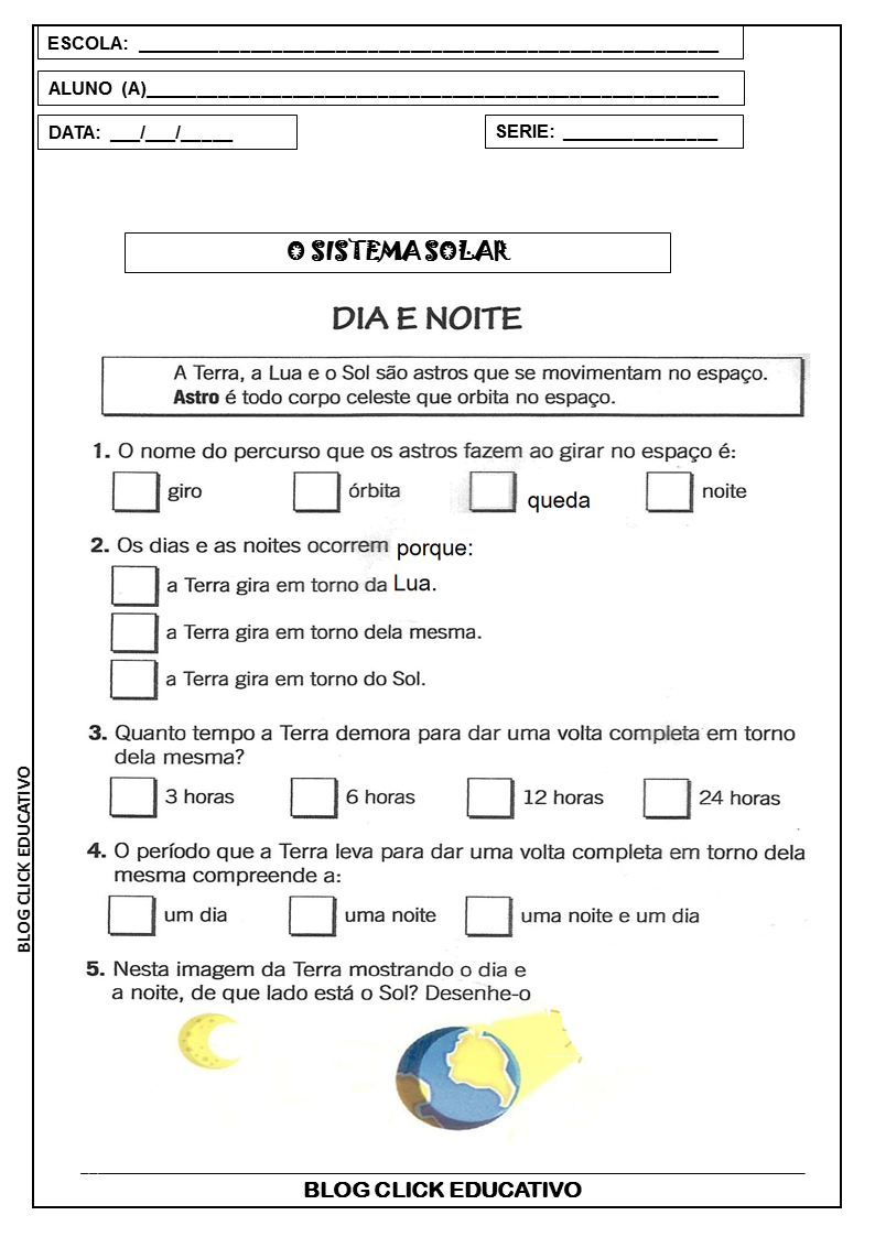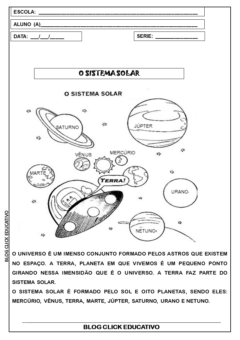 2º ANO: SEQUENCIA DIDÁTICA SOBRE SISTEMA SOLAR PARA IMPRIMIR