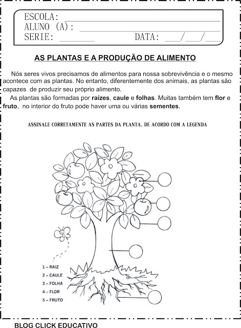 Atividade de Ciências – Plantas e a produção de alimento 3º ano