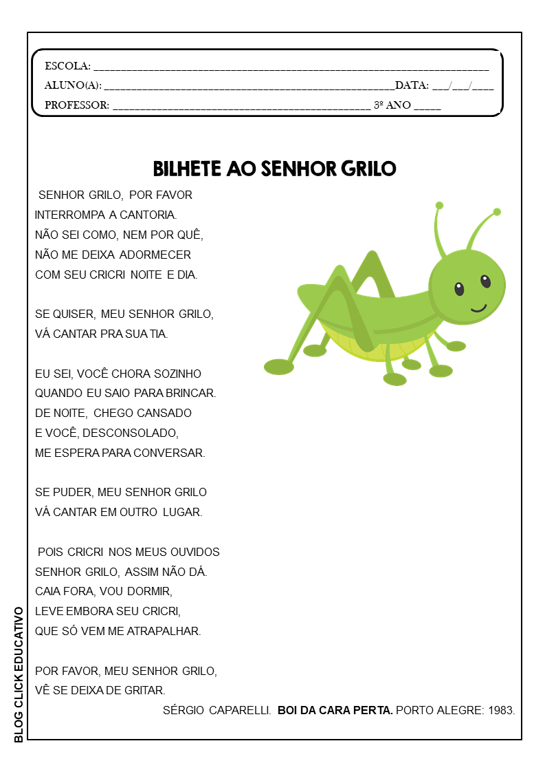 Atividade para imprimir: Interpretação de texto 3º ano.