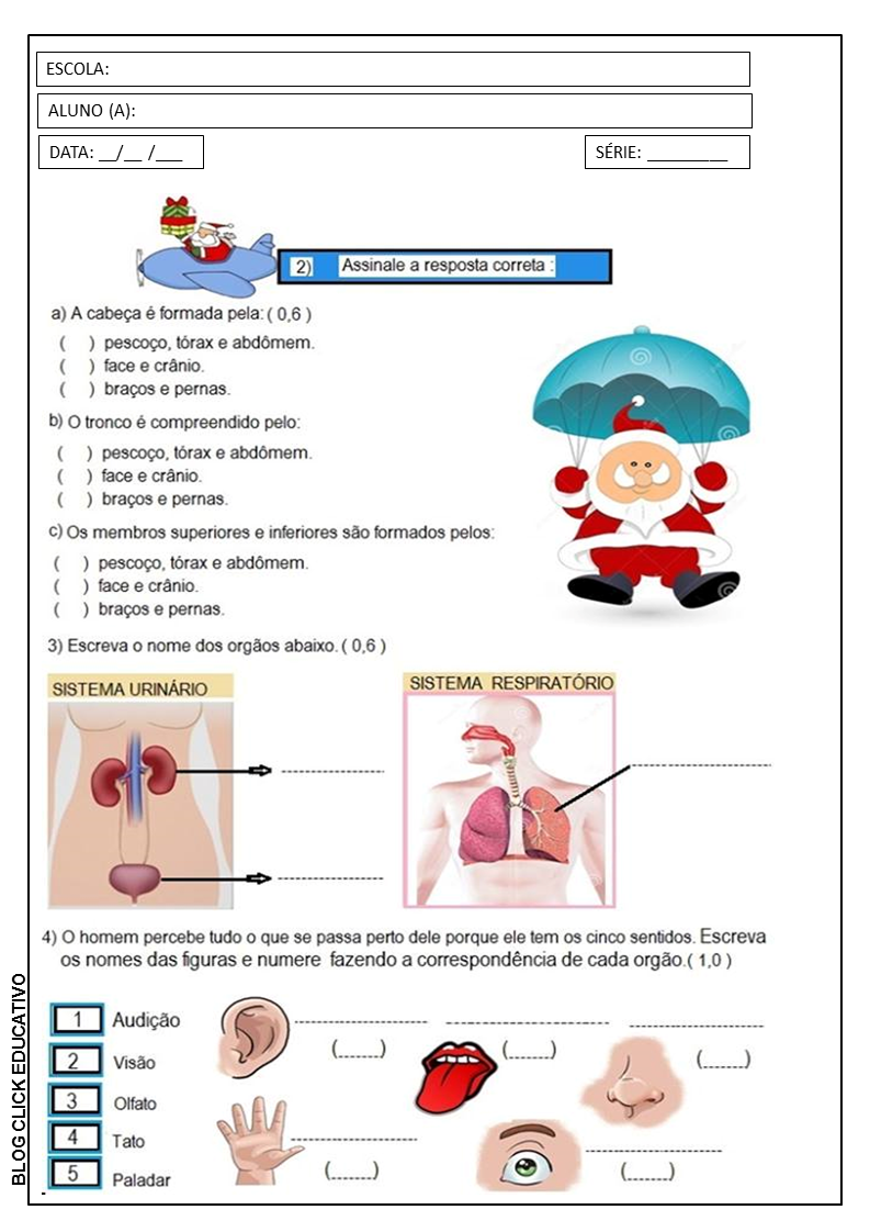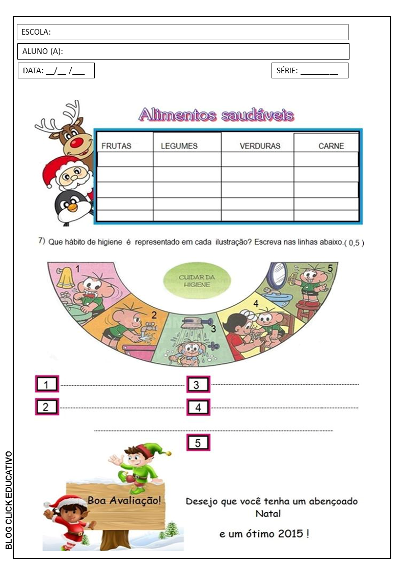 Segue abaixo, um modelo de avaliação para a turma de terceiro ano dos anos iniciais do ensino fundamental.