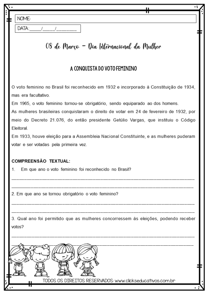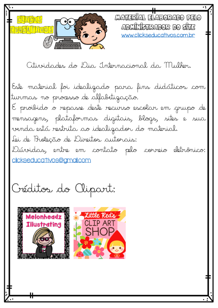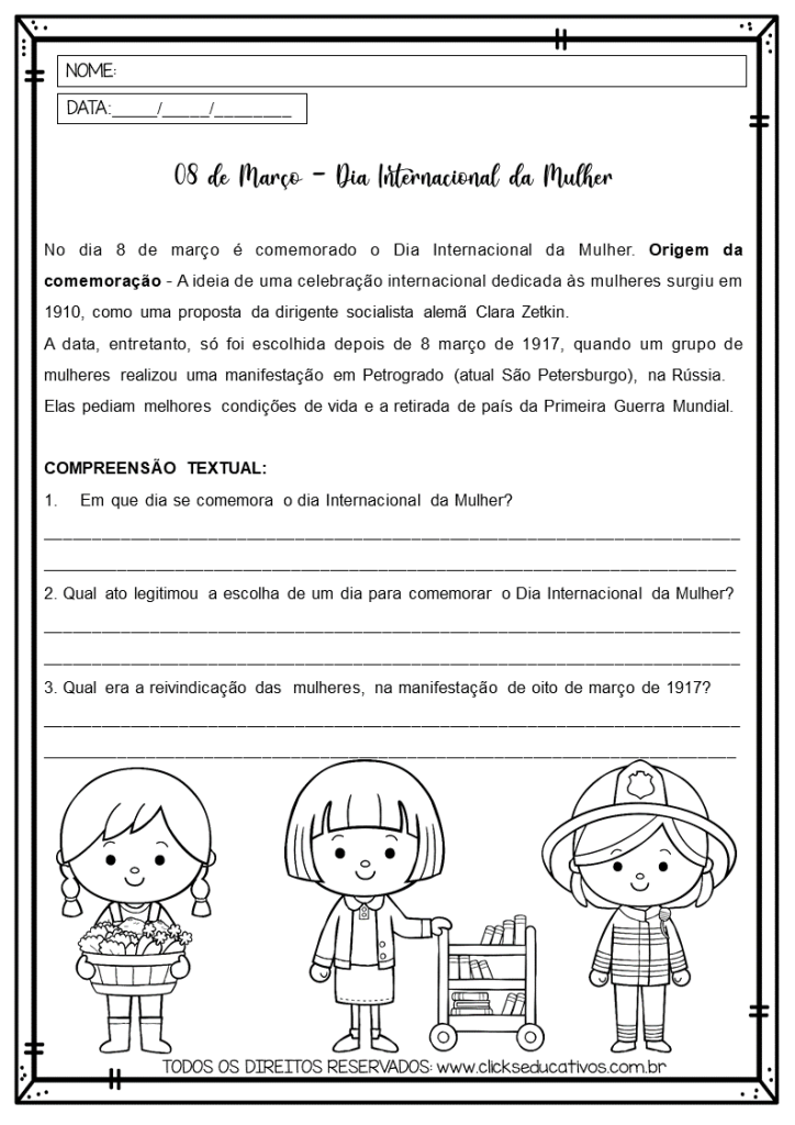 Atividades 1º ao 3ºano – Dia Internacional da Mulher