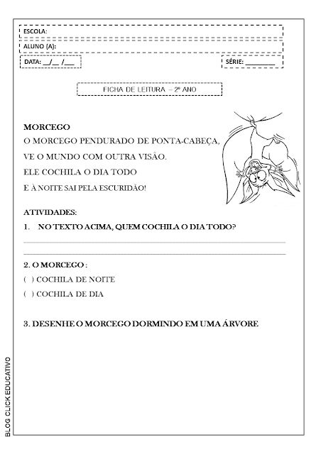 Ficha de Leitura com plano de aula: Morcego