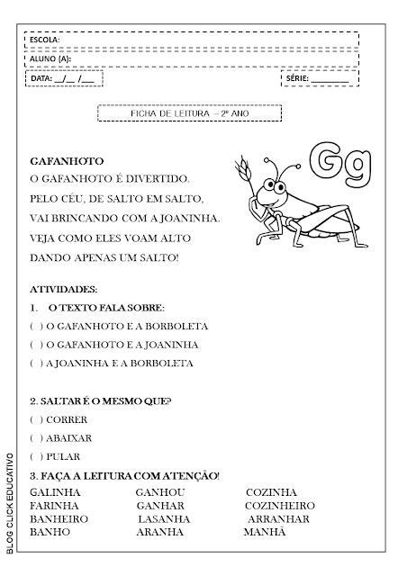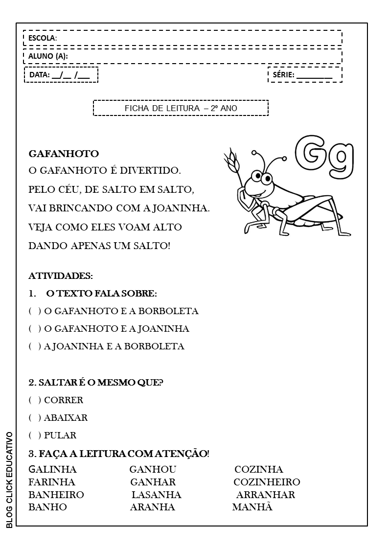 Ficha de Leitura para imprimir: Gafanhoto