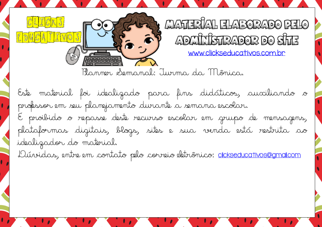 Olá professores! Hoje teremos o Planner Turma da Mônica, um recurso para professores imprimível gratuito para este ano letivo!