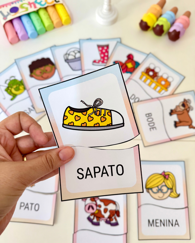 Esse tipo de atividade ajuda a criança a compreender que as palavras são formadas por partes menores chamadas sílabas. Dessa forma, o quebra-cabeça de sílabas simples contribui diretamente para o desenvolvimento da leitura.