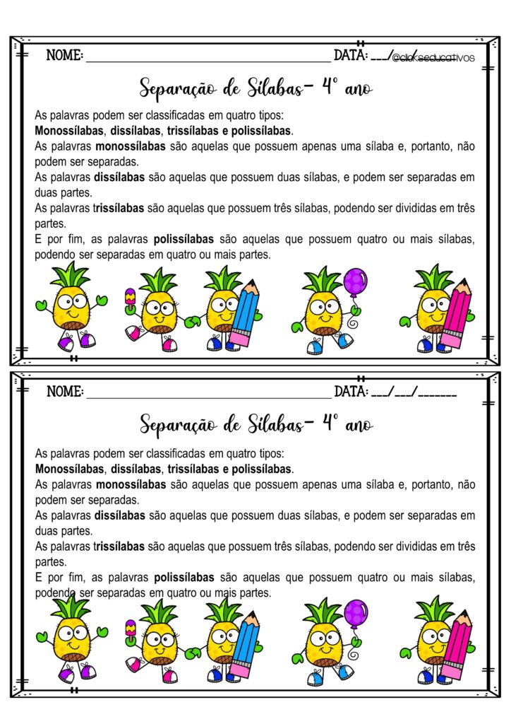 Separação de sílabas 4º ano
